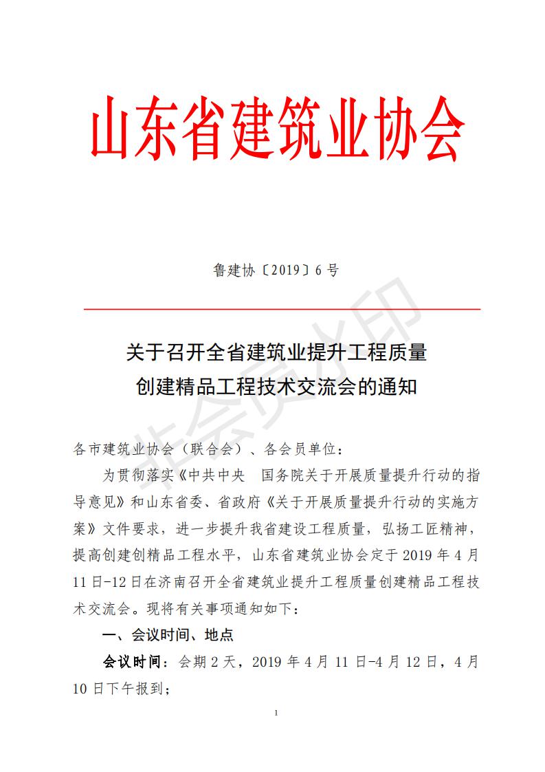 關(guān)于召開全省建筑業(yè)提升工程質(zhì)量創(chuàng)建精品工程技術(shù)交流會(huì)的通知